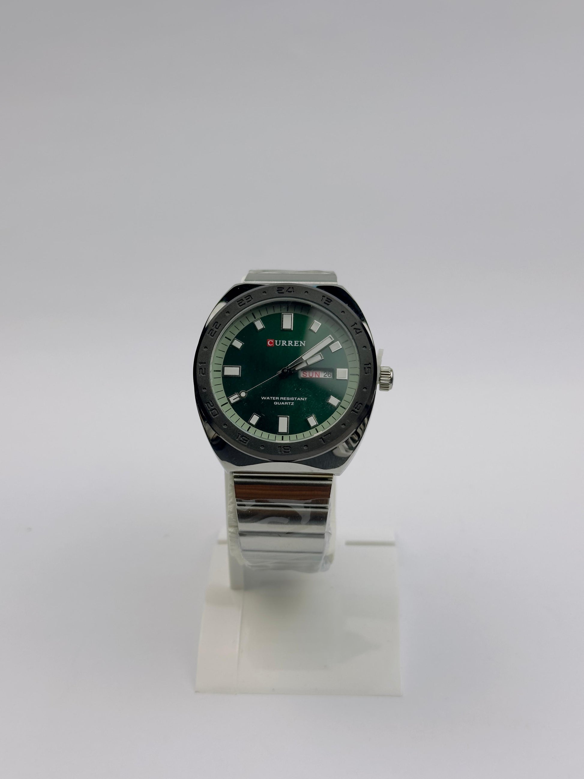 Meet the CURREN Men's Stainless Steel Watch from Tick Empire Watches, a perfect blend of sophistication and everyday utility. This watch is designed for the man who appreciates a touch of color without sacrificing a timeless, elegant look. The stunning deep green dial is the centerpiece, offering a refreshing alternative to traditional watch colors and making it a true fashion trend.