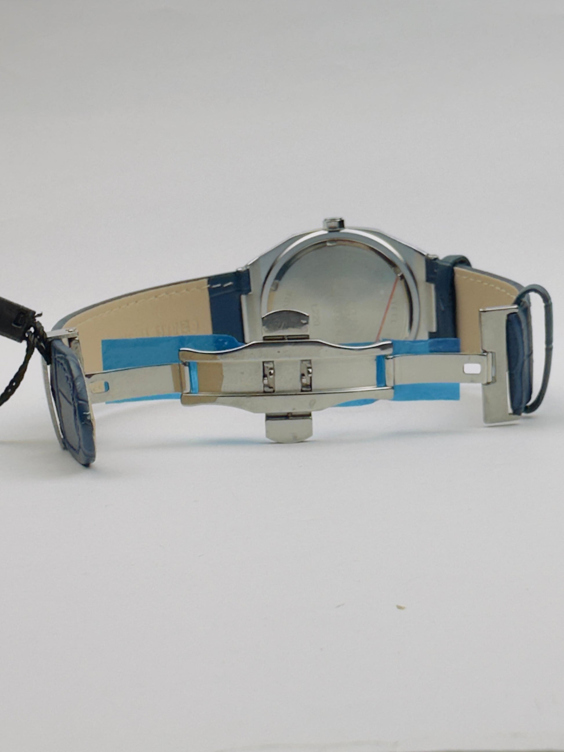 The watch is powered by a reliable quartz movement and includes both a day and date display to keep you on schedule. The deep blue leather strap with a crocodile texture offers a comfortable and secure fit, making it perfect for both professional and casual wear. Whether you're dressing up for a special occasion or just want to elevate your daily style, this timepiece provides a sense of prestige without the high cost.